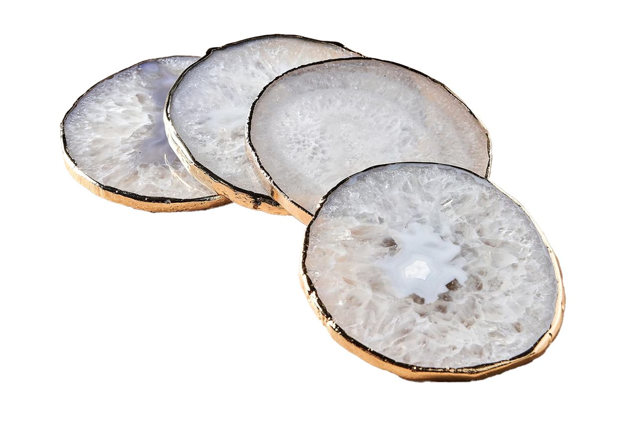 Yougoals Gold Edge White Agate Coasters, Set of 4