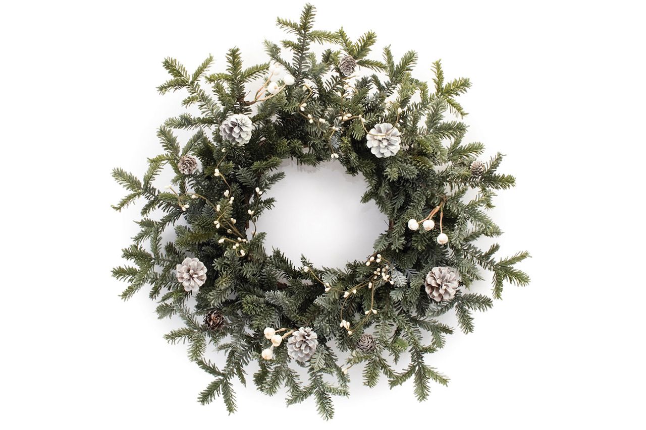 If you’re someone who likes to have a wreath up year-round that you change out from season to season, this pick from Wayfair is a great option for winter that doesn’t exclusively read as Christmas. The simple greenery combined with some flocked pine cones and tiny sprays of white berries is all you need to achieve that wintery look at your front door—and you can always add lights, bows, and even little ornaments when the holidays start to approach.