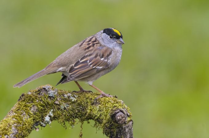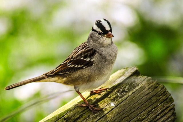 With bold white stripes on its head, this striking bird is an eye-catching sight. It typically leaves in late spring, coinciding with the time when dandelions turn into seed puffs, which are a favorite food source. These sparrows may travel as far as the Arctic Circle for nesting.