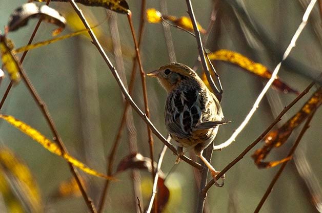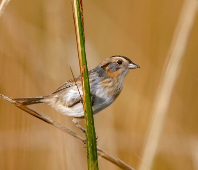 Found in wetlands, especially in the Midwest, these sparrows are sometimes called “orange sparrows” due to their coloring. They were once considered the same species as the saltmarsh sparrow.
