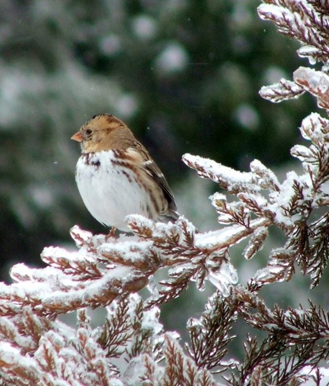 Known affectionately as snowbirds, these black and white sparrows are a sure sign of winter. Part of the sparrow family, they are a common sight in backyards and open spaces.