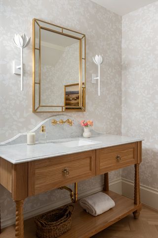 Black and white checkered flooring is also another winning choice. "It conjures up vintage glamour vibes but it can be paired with modern tiles and vanities," Julia Newman, the founder of Julia Adele Design, says.