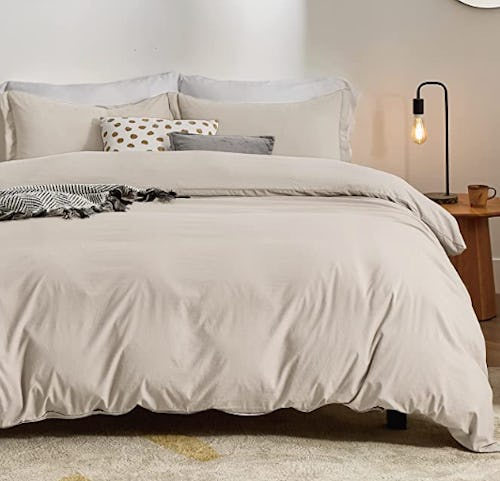 Made from smooth, soft microfiber, this duvet cover feels dreamy and gives your bedroom a fresh look. Best yet, whenever you get tired of it or you need to get it clean, you can remove it quite simply (there’s a zippered closure) — it’s machine washable. Included are two coordinating pillow shams. There are tons of colors (and bed sizes) to choose from in the listing.