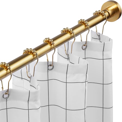 This shower curtain rod is 1 inch thick with a premium golden finish — these elements combine to give it a bougie feel. It goes up tool-free using spring tension design, and the rubber pads on the ends provide a secure hold, even if you opt for a thick shower curtain.