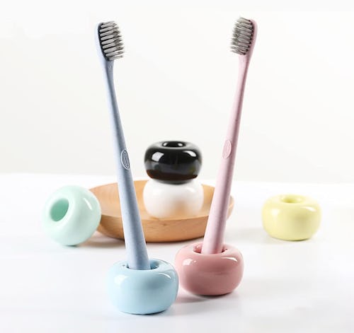 Made from ceramic, these compact toothbrush holders will keep your brush off your counters — which is far more hygienic. “It takes up very little space & does its job perfectly holding your toothbrush,” explained one commenter. The holders are ventilated for quick drying, and the nonslip bottoms stop them from sliding. Two come included, and lots of colors can be found in the listing.