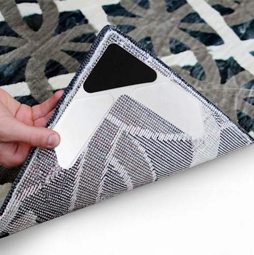 These adhesive grippers stick onto the corners of rugs to prevent them from curling. They work on any rug material and flooring type, including outdoor surfaces, and are completely waterproof.