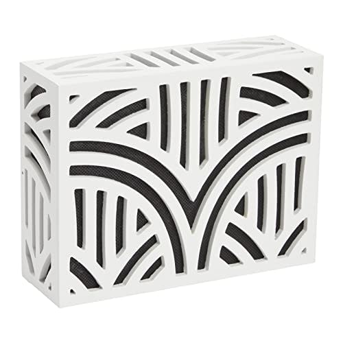 This wooden box covers your doorbell chime and features a Corinthian-inspired design. It is easy to mount using screws and adhesive.