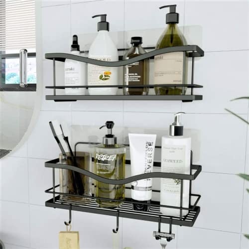 These shower caddies stick in place with adhesive and provide ample storage for bath products. They are made from stainless steel and can hold up to 20 pounds each.