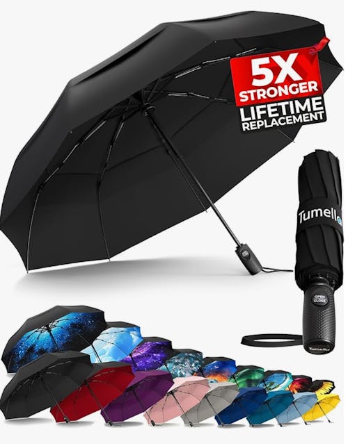 TUMELLA Strongest Windproof Travel Umbrella is built to withstand high winds. Its vented canopy allows it to handle gusts of 70 miles per hour. When folded, it’s easy to carry and weighs less than a pound. It comes in over 40 colors and designs, making it a practical and stylish choice.