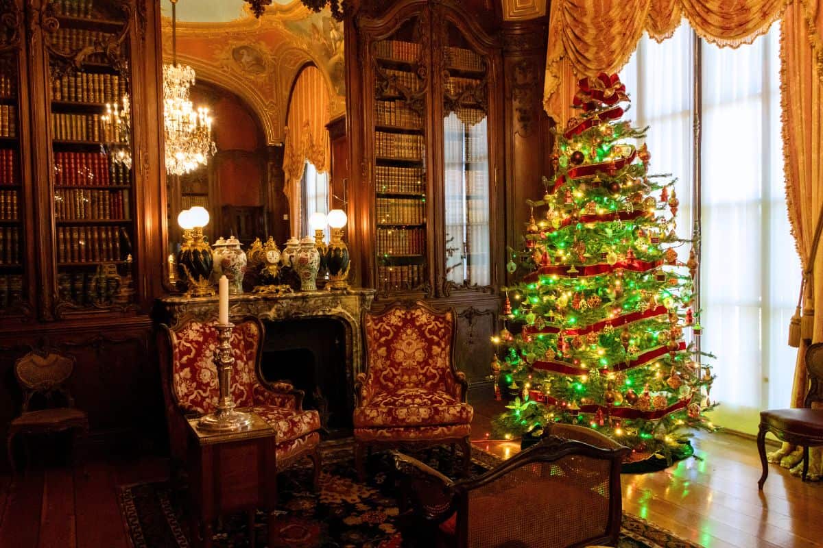 Newport, Rhode Island is home to multiple stunning mansions that were once summer homes for some of the wealthiest families during the Gilded Age. These historic houses are now open for tours, and the holidays are a particularly enchanting time to visit as they are beautifully decorated.