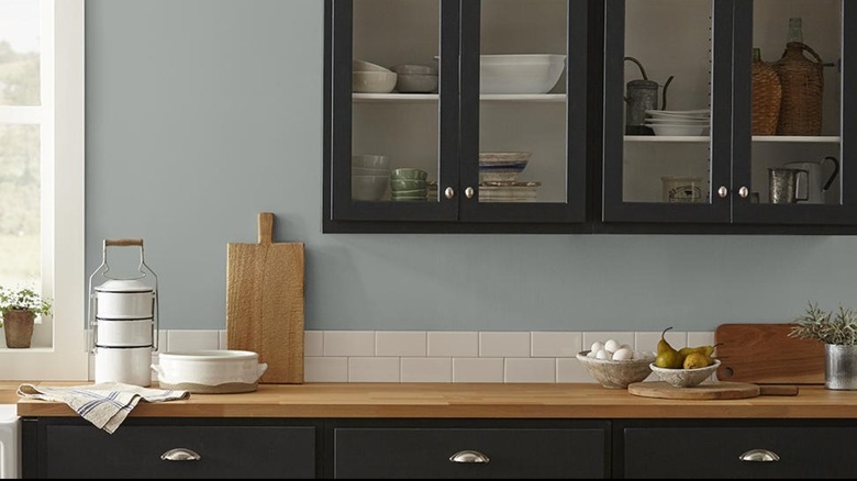 In 2025, Gaines confirmed to House Beautiful that Cottage Grove had started to become one of her go-to colors, and it looks especially nice in kitchens. The interesting thing about this color is that it looks different in different light, looking like the darkest blue, deepest green, or dark grey depending on the light sources available for your kitchen. It's a better choice than a dated hunter green since it's a more timeless and nature-inspired color. Despite being dark, it's a peaceful color that works with a multitude of contrasting colors you might have in your kitchen. It looks especially nice on cabinetry but works well on walls and backsplashes as well.