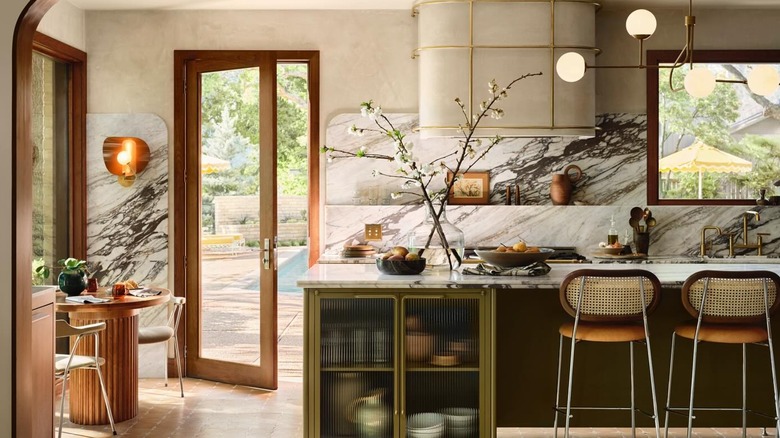 Some of the nature-inspired colors that Joanna Gaines has been using recently have been a variety of greens, which she often pairs with white. It's a way to bring a little bit of the outdoors indoors with your kitchen color choices. Gaines is especially fond of using earthy colors to create kitchens that won't go out of style. She has been using all sorts of green everywhere lately. In 2024, she told House Beautiful that she likes the emotions that moody and vintage greens evoke.