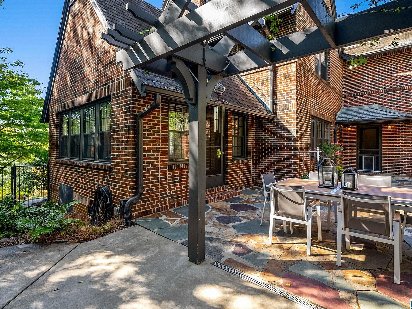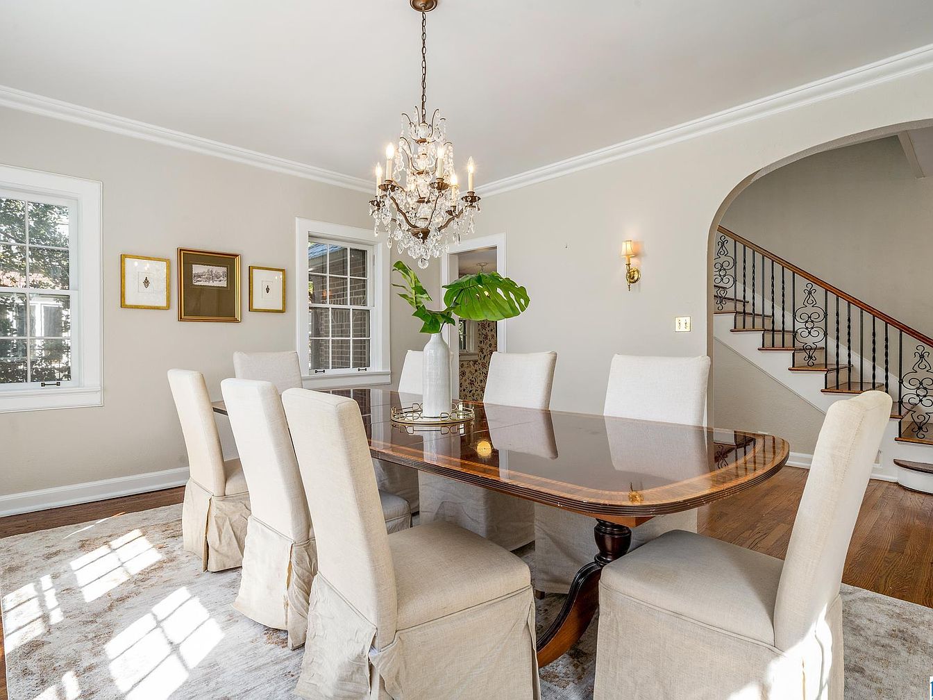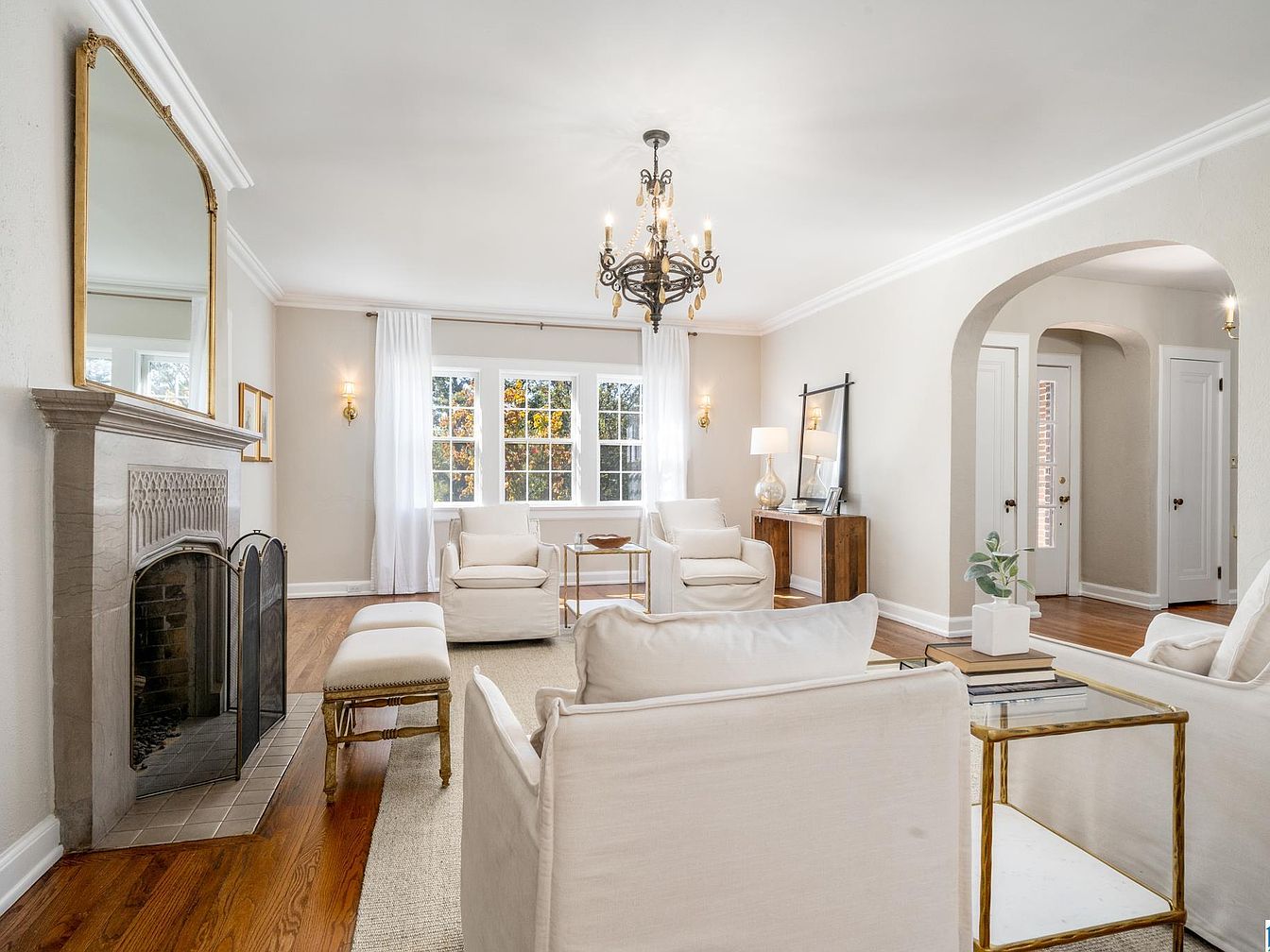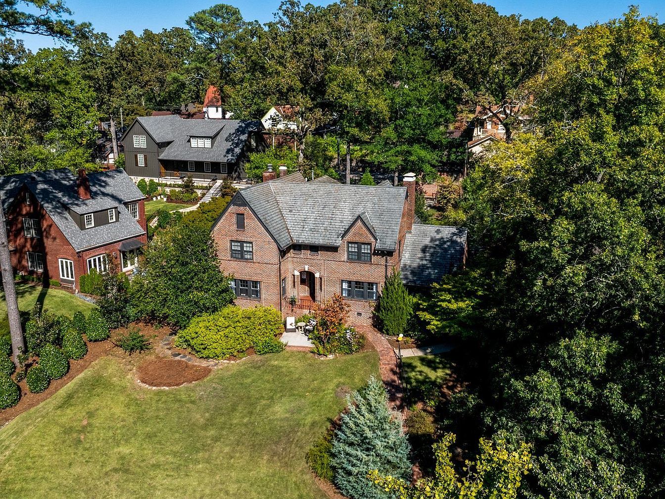 This exquisite Forest Park home in Birmingham, Alabama, boasts historic charm and significant architectural value, likely dating back to the early 20th century. It reflects a classic Tudor Revival style with its steep gabled roof, detailed brickwork, and arched entryway. Beyond its original character, the house has undergone thoughtful renovations, including an updated kitchen with marble countertops and stainless steel appliances, refreshed bathrooms, and preserved hardwoods. Spacious and inviting, the residence features a formal living room, keeping room, and a welcoming foyer, while outdoors, the patio and fire pit offer ideal spaces for relaxation. Priced at $1,150,000 and set on a lush, landscaped plot near Triangle Park, this home is perfect for those desiring both history and modern comfort. Square footage and plot area details are not specified.