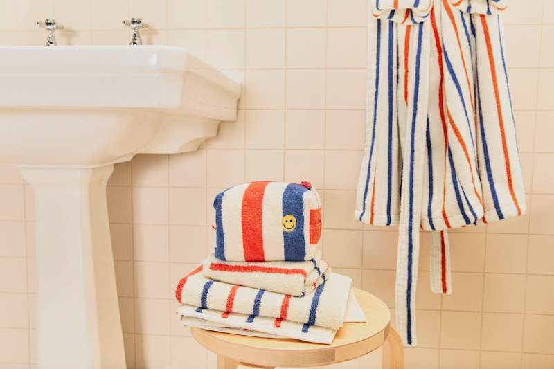 Outfit your bathroom with shower curtains, mats, organizational tools, robes, and towels to make this space as cozy as your bed situation. -