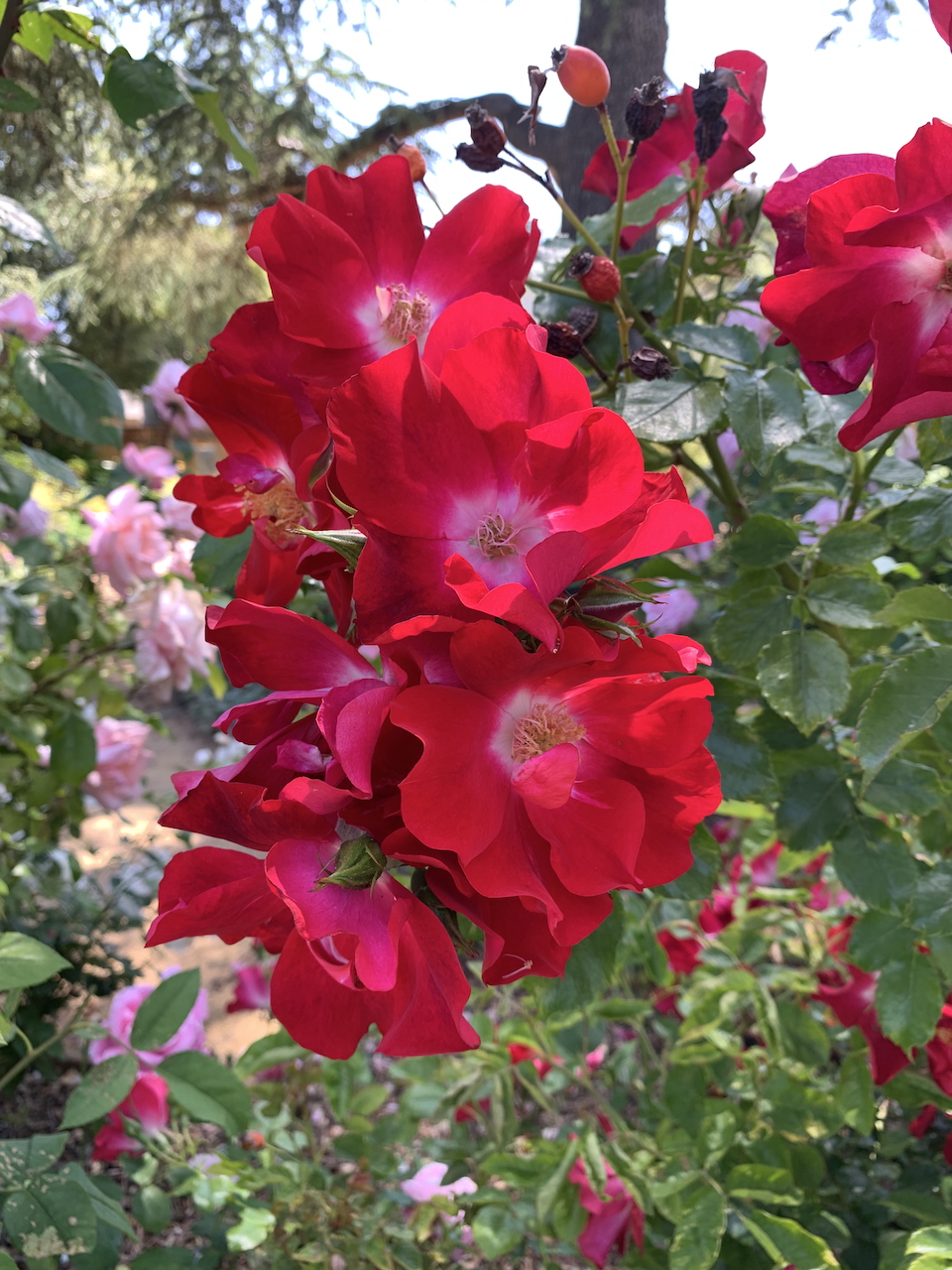 Wild roses (species roses): For info on California’s most popular wild rose, visit calscape.org/Rosa-californica-(California-Wildrose). Rosa californica can grow 8-10 feet high and 10 feet wide. After trying to control it for a while, I eventually eradicated it from my garden.