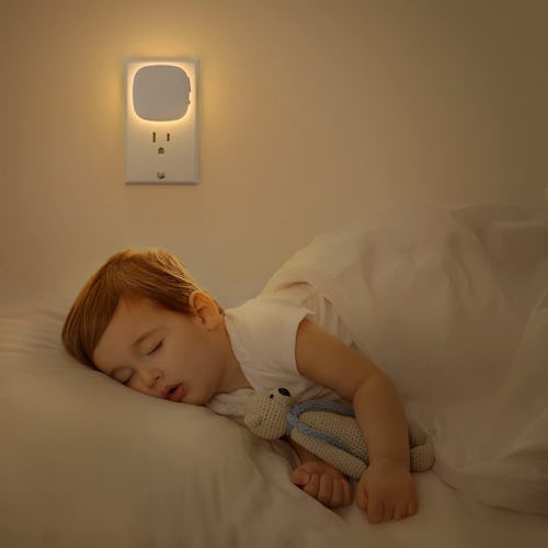 AUVON LED Plug-In Night-Lights (2-Pack) have a sleek, backlit design that helps protect your eyes from bright light in the middle of the night. They’re motion activated and have multiple dimming levels for customization.