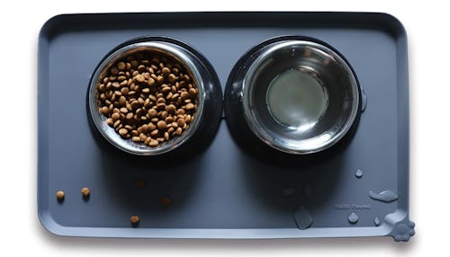 Hoki Found Waterproof Pet Feeding Mat collects spills and messes under your pet’s food and water bowls. It’s easy to clean and comes in dozens of colors.