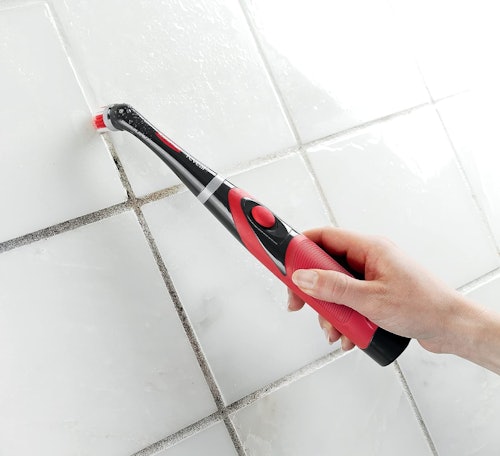 Rubbermaid Power Scrubber Brush has a toothbrush-sized head that easily gets into nooks and crannies between tiles. It’s wireless and requires minimal effort.