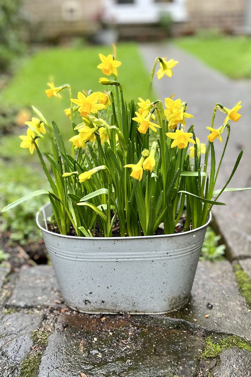 Cheery daffodils add splashes of springtime color! You can plant them in the fall, as you would with in-ground bulbs, but be careful not to let the planters freeze through. In USDA zones 6 and under, consider insulating the planters or even bringing them into a garage or cellar where they’ll stay under about 45°F through the winter.