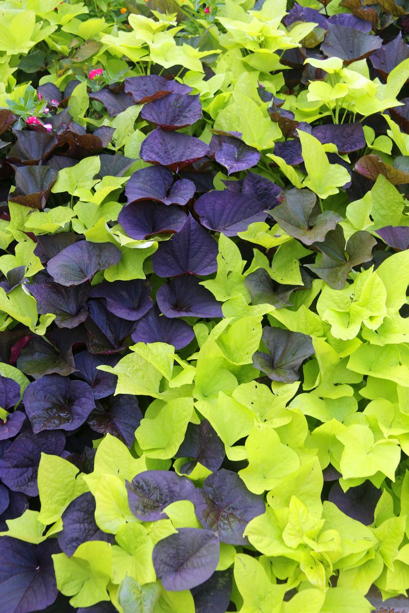 Nothing grows like sweet potato vine in the heat of summer! Its pretty lime green, burgundy or variegated foliage looks great in a combination planter, but it’s an aggressive grower, so it’s often better in its own pot so it doesn’t bully the other plants.