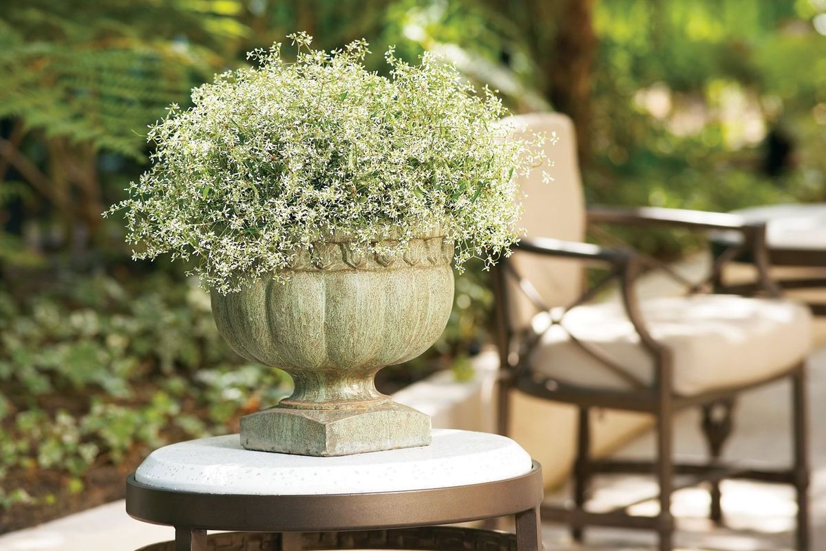 This somewhat lesser-known plant looks frilly but it’s tough as nails in a variety of conditions including heat and drought. Its wispy leaves and profuse airy white flowers offer a delicate baby’s breath-like effect to mixed pots, says Glenn Kopp, horticulture information manager at the Missouri Botanical Garden in St. Louis.