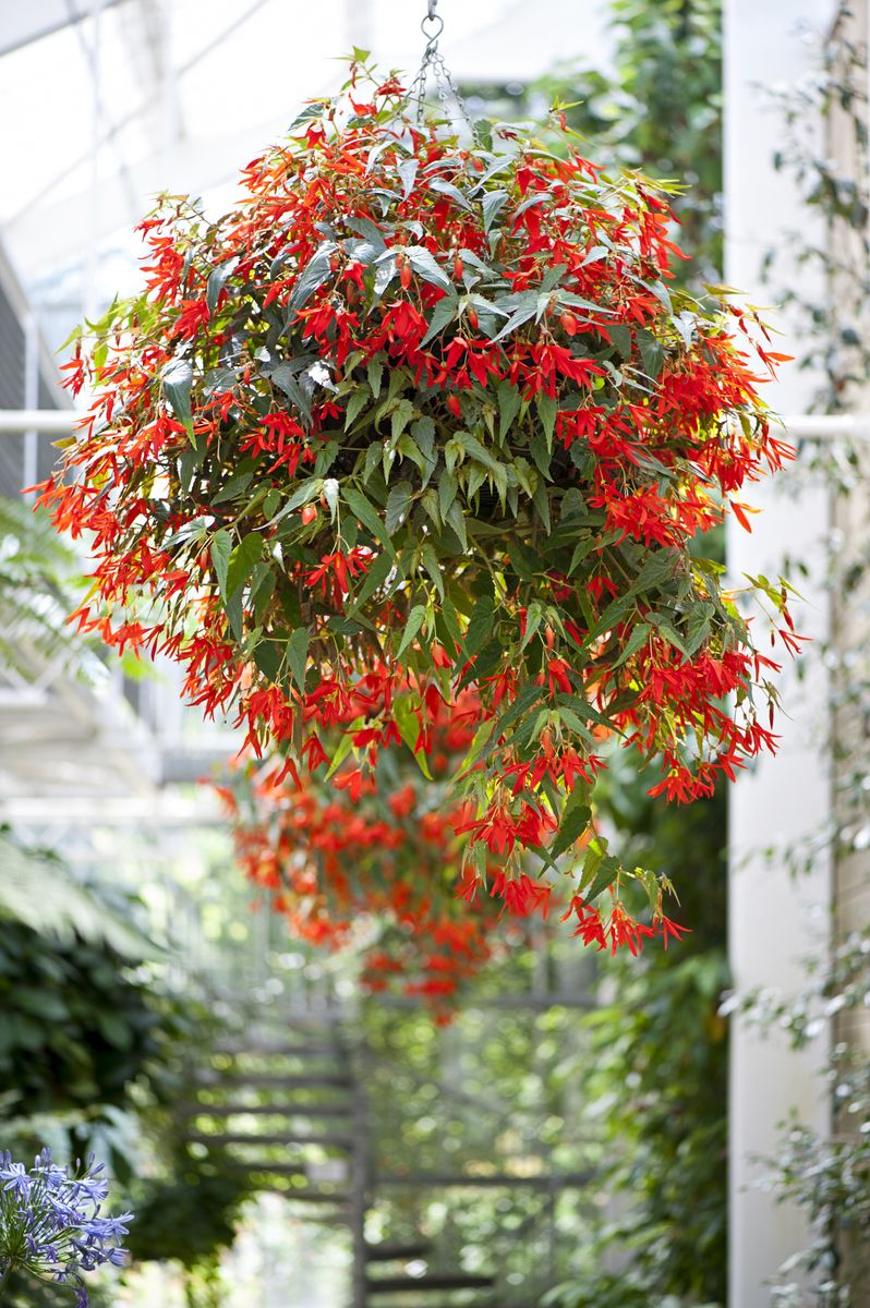 Sure, you can buy those puny hanging baskets at the big box store. But if you plant your own in a larger basket, you’ll get a much more stunning effect. Here, a boliviensis begonia shows off its stuff.