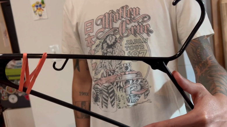 Rubber bands can be used to add grips to hangers, making them ideal for holding slippery fabrics like silk and rayon. Wrap a thick rubber band around each end of your existing plastic hangers to create a high-friction grip that holds clothes securely.