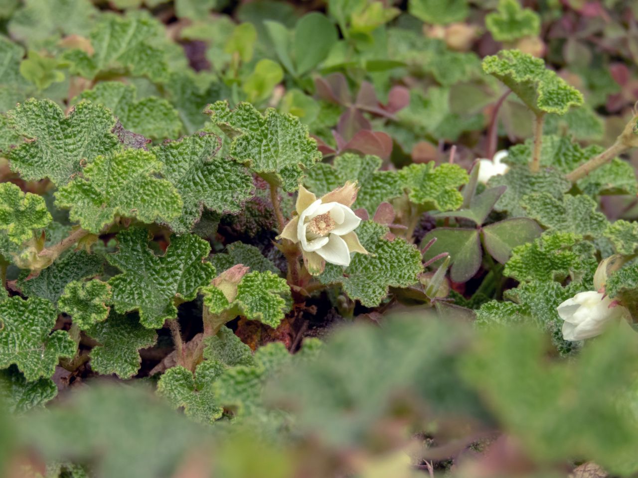 Creeping raspberry adds interesting texture to the ground plane throughout the year. Its wrinkled foliage takes on rusty pink to burgundy hues in fall and winter. It develops long, scrambling stems that spill over rock walls or container edges. This aggressive grower is useful in challenging areas such as hot dry sites, slopes, and areas with fluctuating soil moisture. Provide afternoon shade in hot climates.