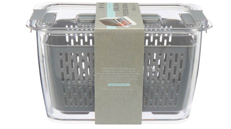 One bummer about buying fresh produce at the grocery store is that it can often go bad quite quickly. To prevent this, having storage options that help keep the produce fresh is ideal for expanding longevity. POpshelf has a produce keeper bin that's available for $10, and it's a great size for most refrigerator shelves. This bin has a clear plastic exterior and a gray basket that lies perfectly inside. The gray basket works as a colander to rinse your fruit or vegetables, is removable, and is designed to prevent moisture. There are also handles built into the basket, which make transferring the produce out super simple.
