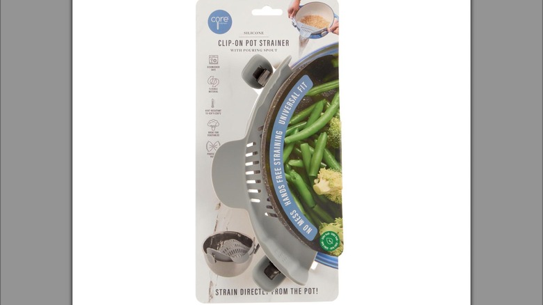 This strainer is $5 and made of a flexible silicone material, which allows it to fit nearly any pot size. There's a spout on the center edge of the strainer that helps to keep the liquid contained, avoiding any spillage or mess while straining the food. It's also dishwasher safe, which can save you on clean-up time.