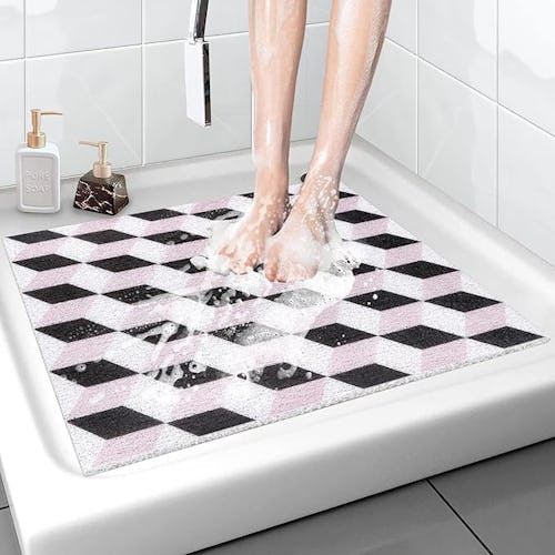 A Loofah-Like Square Shower Mat With A Nonslip Bottom
