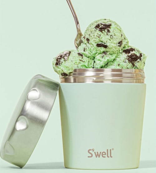 Put your favorite ice cream in this stainless steel ice cream chiller that fits 16 ounces, which equals a pint. It has a twist-off lid for a secure seal and can be tossed in the dishwasher for quick cleanup. The triple-layered insulation keeps frozen treats chilled for longer, and the container’s exterior is designed to prevent condensation.