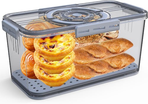 Not only is this bread box easily portable, thanks to a carrying handle on the lid, but it features an adjustable air valve that allows you to choose how much air comes in. The bread box is made of food-grade, BPA-free plastic and is equipped with a time record dial so you know exactly when baked goods were placed inside.